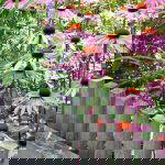 Deze speelse mix van buitenplanten combineert geurige, sierlijke en sterke soorten tot een levendige en harmonieuze plantenbak. Met de geurige Pelargonium Citrosa, de elegante Bougainvillea Sanderiana Piramide en het krachtige Olea europaea creëert u een aantrekkelijk en gevarieerd geheel. De frisse Fragaria x ananassa Delizzimo, luchtige Miscanthus sinensis Ferner Osten en roodachtige Uncinia rubra Everflame zorgen voor extra kleur en textuur. Dit pakket is perfect voor een zonnige plek en levert een mooi evenwicht tussen hoogte en structuur.