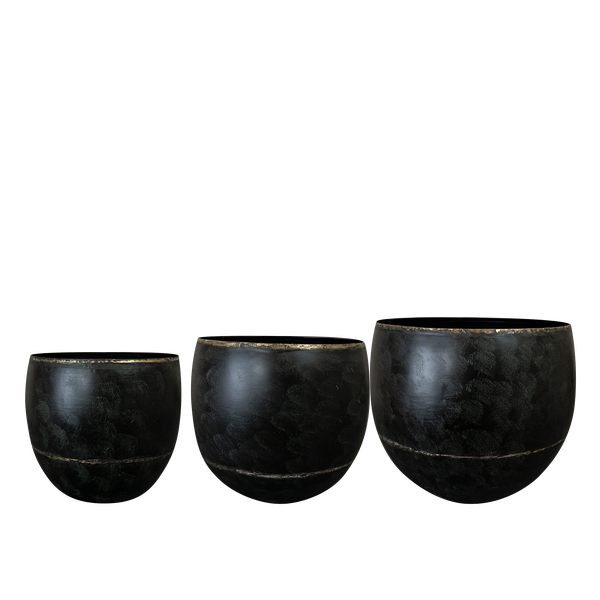 De vintage pot set straalt een tijdloze charme uit dankzij het handgemaakte karakter en de subtiele gouden bies. De potten voelen stevig en duurzaam aan en passen zowel binnen als buiten. Gebruik ze samen voor een speels effect of apart om verschillende plekken te verfraaien. Ze geven je planten een prachtige, klassieke uitstraling die opvalt zonder te overheersen.