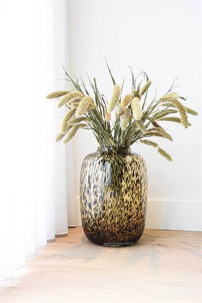 De Artic Cheetah vaas is een stijlvolle blikvanger met een trendy luipaardprint die elk interieur verrijkt. Door zijn mondgeblazen glas krijgt de vaas een luxe uitstraling die niet alleen aandacht trekt, maar ook zorgt voor een gezellige sfeer in je woonruimte. Perfect om te combineren met bloemen, kunst of groen, en ideaal om neer te zetten op een dressoir, bijzettafel of bureau. Deze vaas voegt op een subtiele manier extra karakter toe aan je woning.
