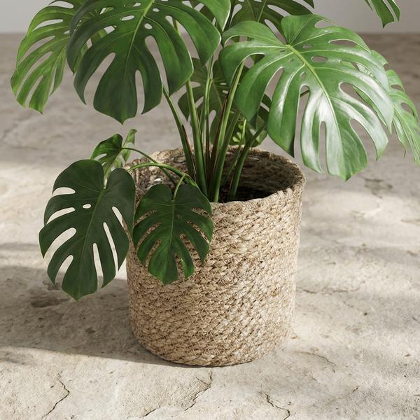 Deze mand is gemaakt van fijne, natuurlijke vezels die een zachte, aardse sfeer in je huis brengen. Door zijn neutrale kleur past hij moeiteloos in verschillende interieurstijlen, van modern tot landelijk. Gebruik hem om planten in te zetten en zo een extra laag gezelligheid te creëren, of bewaar andere spullen op een stijlvolle manier. De mand voelt warm en uitnodigend aan en brengt de natuur dichtbij, wat zorgt voor een kalme en ontspannen sfeer in elke kamer.