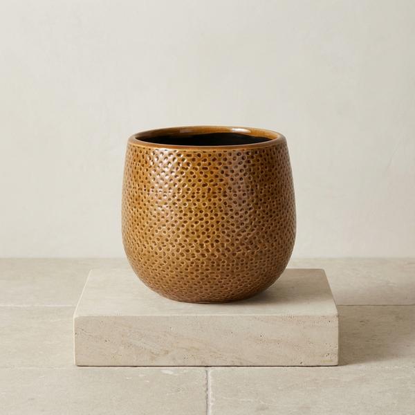 De Gabriel ronde pot brengt een natuurlijke elegantie in huis met zijn zachte, organische vormen en warme okerkleur. Het subtiele reliëf met kleine spikkels geeft de pot een fijne textuur die je uitnodigt om hem aan te raken. Door het ambachtelijke glazuur vangt de pot het licht op een bijzondere manier, wat zorgt voor een sfeervol en gezellig effect. Deze pot is ideaal om je groene planten in de spotlight te zetten en combineert goed met allerlei soorten planten, van volle kamerplanten tot luchtige hangplanten. Zo creëer je stap voor stap een warme en natuurlijke sfeer in je huis.