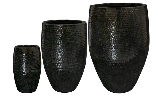 De set Thom potten is gemaakt van metaal met een zwarte, glanzende afwerking die een elegante touch geeft aan elke ruimte. Door hun verschillende maten passen ze mooi bij elkaar en geven ze een levendige uitstraling aan je interieur of tuin. Ze zijn perfect voor wie graag grote planten wil neerzetten zonder gedoe. De tijdloze zwarte kleur en het moderne ontwerp zorgen ervoor dat de potten goed combineren met allerlei stijlen en planten, van robuuste kamerplanten tot sierlijke kunstplanten.