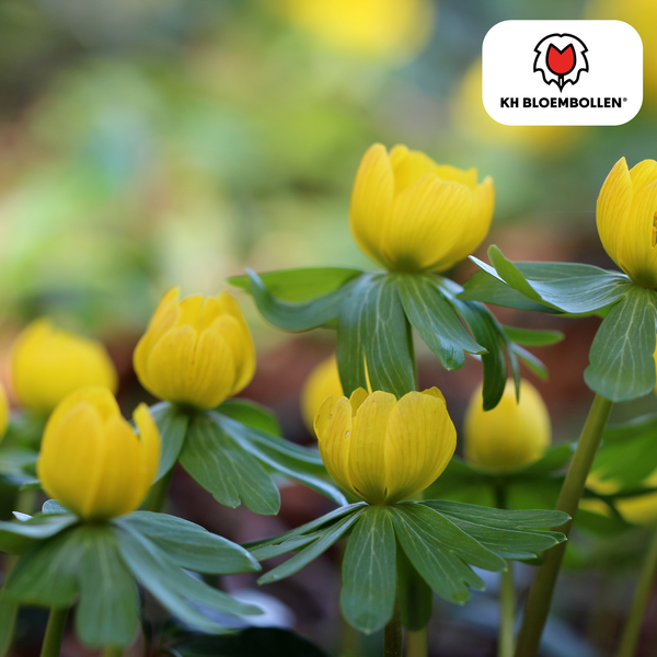 Akonieten, ook wel bekend als Winterakonieten, zijn een van de eerste voorjaarsbloeiers die je tuin sieren met hun vrolijke, heldergele bloemen. Ze zijn ideaal voor het vormen van een zonnig tapijt onder bomen, struiken of in het gras en bieden vroeg voedsel aan bijen. Met 30 bollen creëer je een levendige lentesfeer, perfect voor elke tuin of park. Dus zoiets
