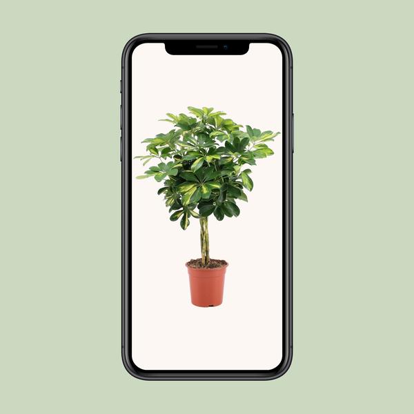 De Schefflera Arboricola Gold Capella, of Parapluboom, is een kamerplant met aantrekkelijke, glanzende bonte bladeren die makkelijk te verzorgen is. Komt oorspronkelijk uit tropische gebieden van Taiwan, China en Australië. Ideaal voor elke ruimte dankzij zijn luchtzuiverende eigenschappen en vermogen om te gedijen op plekken met minder licht. Met een huidige hoogte van 75 cm, voegt deze plant een vleugje natuurlijke schoonheid toe aan je interieur.