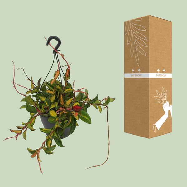 De Hoya Carnosa Tricolor, ook bekend als de Gevlekte Wasbloem, is een betoverende aanwinst voor elke binnentuin. Met zijn kenmerkende driekleurige bladeren in tinten van roze, crème en groen, biedt deze plant een levendig kleurenspel. Hoewel hij kieskeurig lijkt, is het een gemakkelijke plant die goed gedijt op een lichte plek uit direct zonlicht. Let op: hij houdt van droge grond tussen de gietbeurten en vraagt dus niet om veel water. Ideaal voor plantenliefhebbers die weinig tijd hebben.