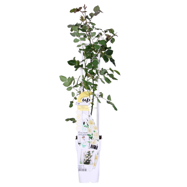 Rosa Crazy in love Vanilla is een prachtige crèmewitte klimroos die van juni tot ver in de herfst bloeit. De glimmende groene bladeren zorgen voor een fris aanzicht, terwijl de bloemen een subtiele geur verspreiden. Deze roos is ideaal voor het versieren van pergola’s en hekken, en heeft een zonnige standplaats nodig om optimaal te groeien. Verwijder oude bloemen regelmatig om de bloei te bevorderen.