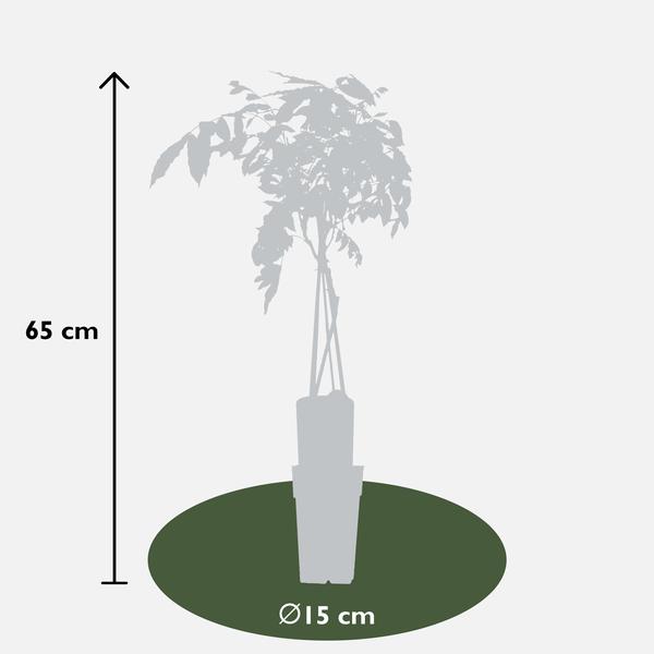 Wisteria sinensis Prolific, beter bekend als blauwe regen, is een sierlijke klimplant die je tuin verrijkt met lange, blauw-paarse bloemtrossen in de late lente en vaak ook in de herfst. Deze snelgroeiende plant kan wel tot 10 meter hoog worden en vormt een idyllische aanvulling op pergola’s en schuttingen. Met de juiste ondersteuning klimt hij naar de zon. Regelmatig snoeien, vooral twee keer per jaar, is essentieel om zijn spectaculaire bloei en vorm te behouden.