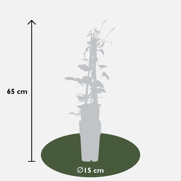 Clematis Rouge Cardinal is ideaal voor schuttingen en pergola’s. Hij combineert mooi met andere klimplanten zoals rozen of kiwi voor een weelderige bloementuin.