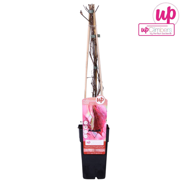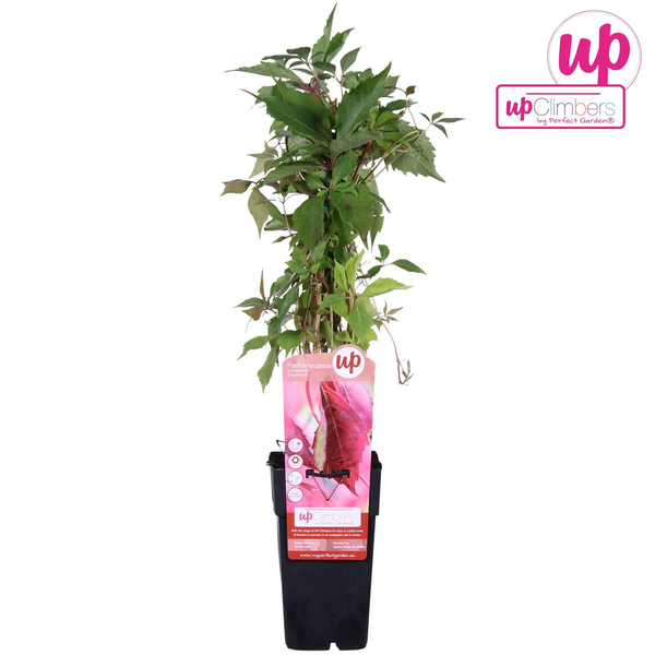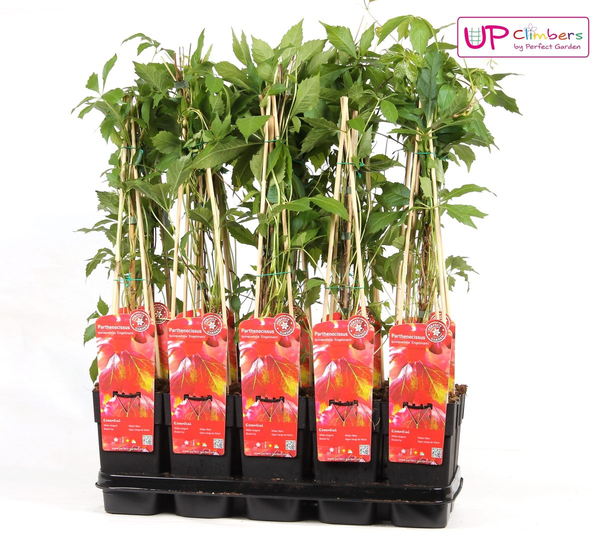 Parthenocissus quinquefolia Engelmannii, ook wel bekend als de Wilde Wingerd, is een zelfhechtende klimplant die snel en stevig kan groeien tegen gevels en schuttingen. Met zijn driepuntige bladeren die in de zomer groen zijn en in de herfst felrood kleuren, kan deze plant elke tuin opfleuren. Hij is makkelijk te onderhouden en kan zowel in de zon als in de schaduw staan, een veelzijdige keuze voor elk type tuin.