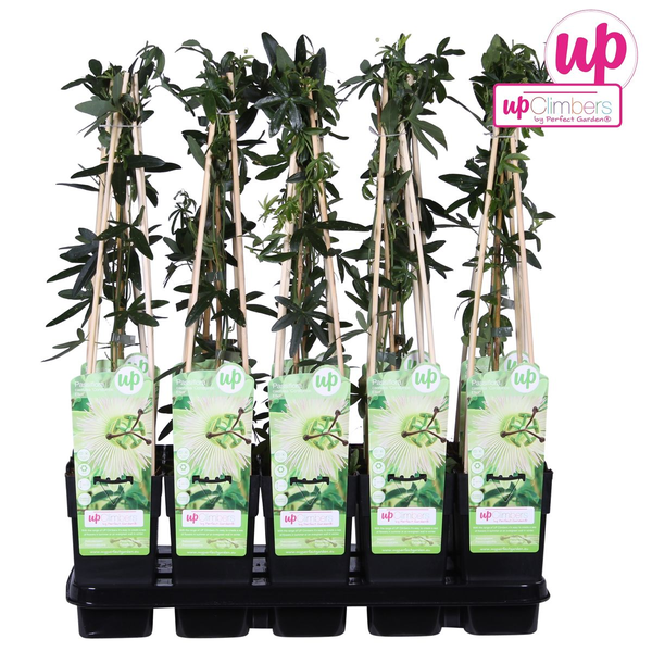 De Passiflora wit caerulea Constance Elliot is een prachtige klimmer voor in de tuin, uitstekend tegen een zonnige schutting of pergola. Combineer met klimplanten zoals clematis voor een weelderige, exotische uitstraling. Perfect voor liefhebbers van tropische tuinen en sierlijke bloemen.